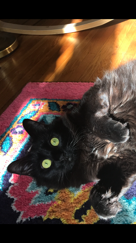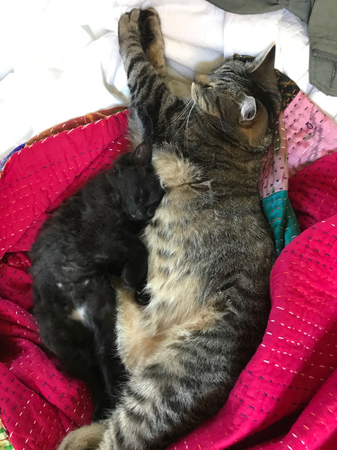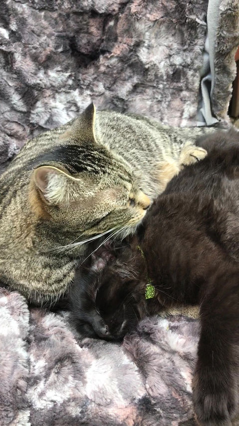 Juliette is the sweetest 10-year-old tabby. She's OwlKitty's adoptive mom, manager and agent. Juliette and her purrents relocated to Portland, Oregon in 2015 — She flew on a plane like a champ.